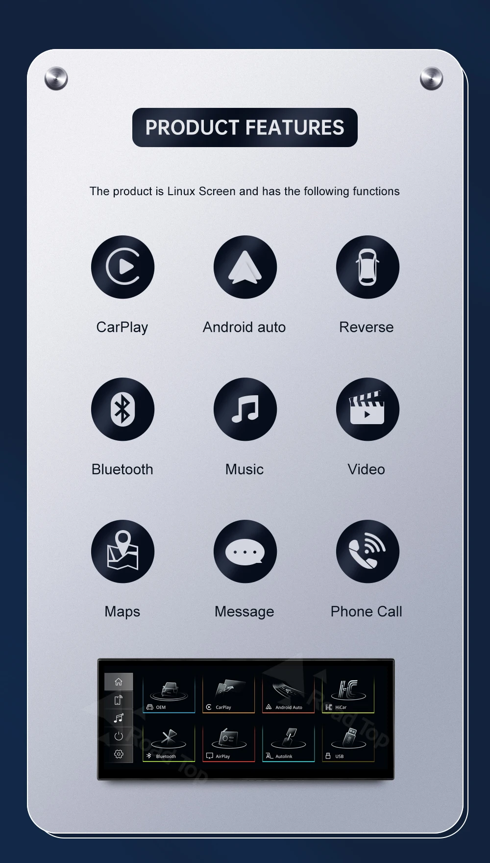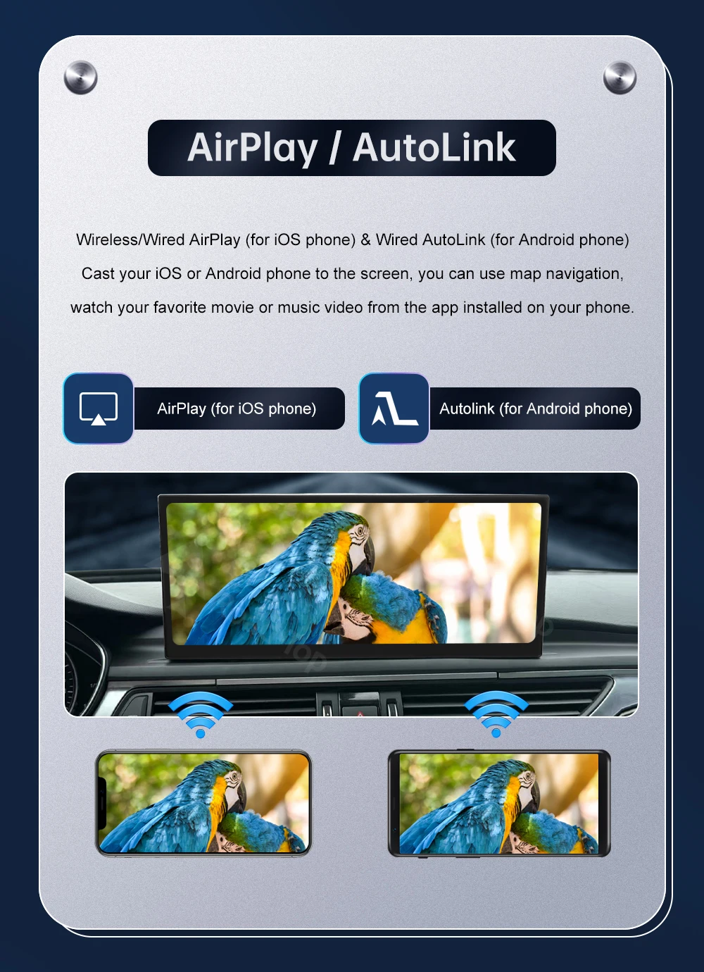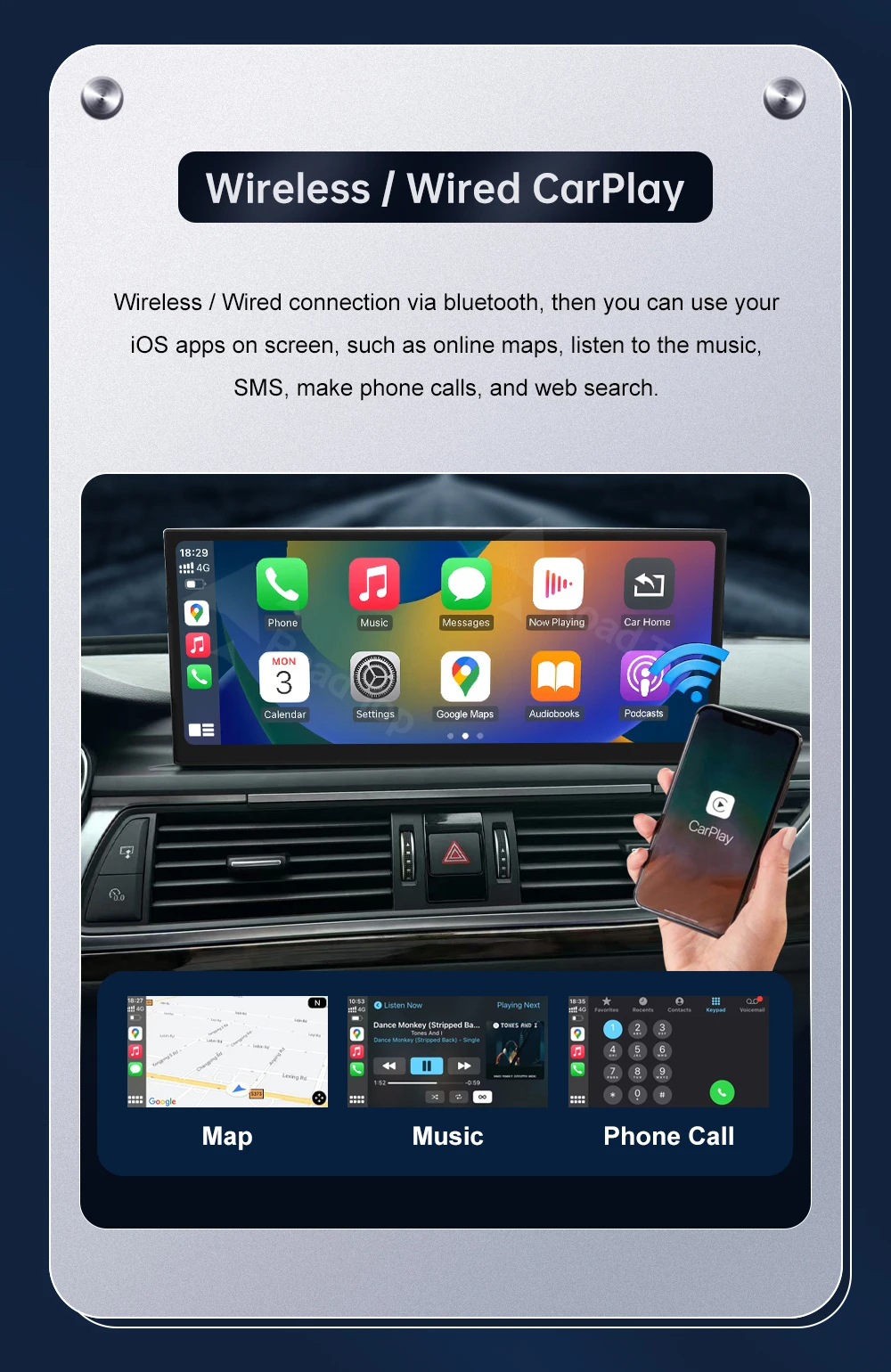 Special Features: Built-in GPS,Mobile Phone,MP3 players,Voice Control,CarPlay,android auto,Reversing Input