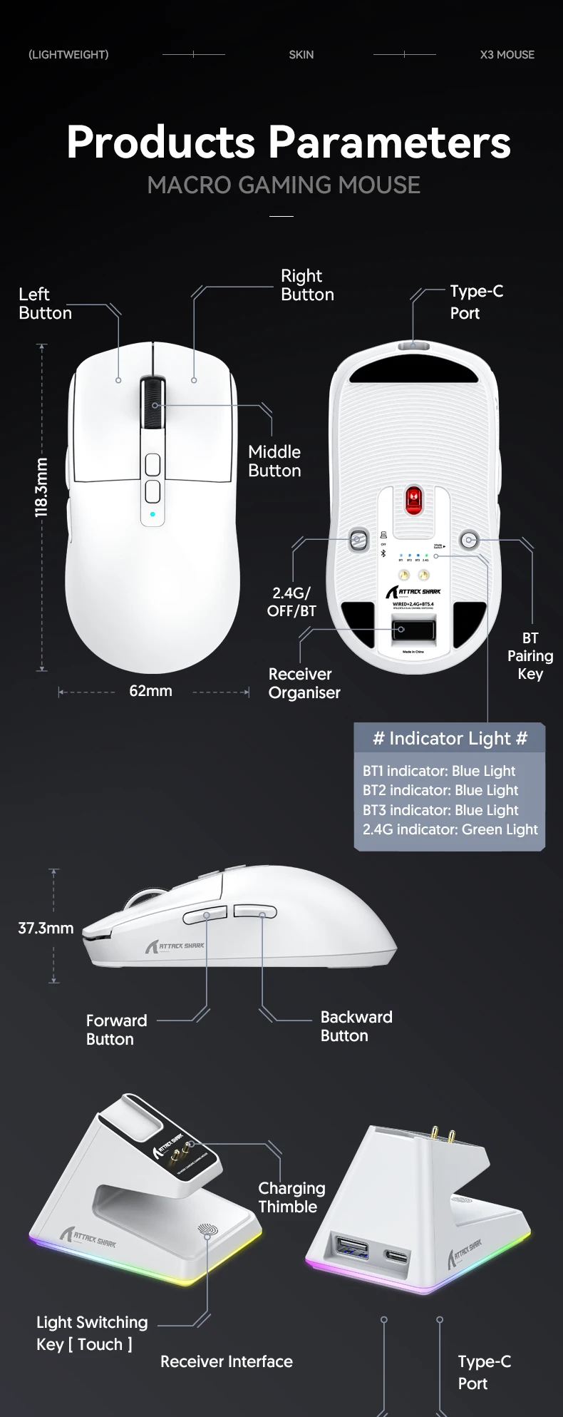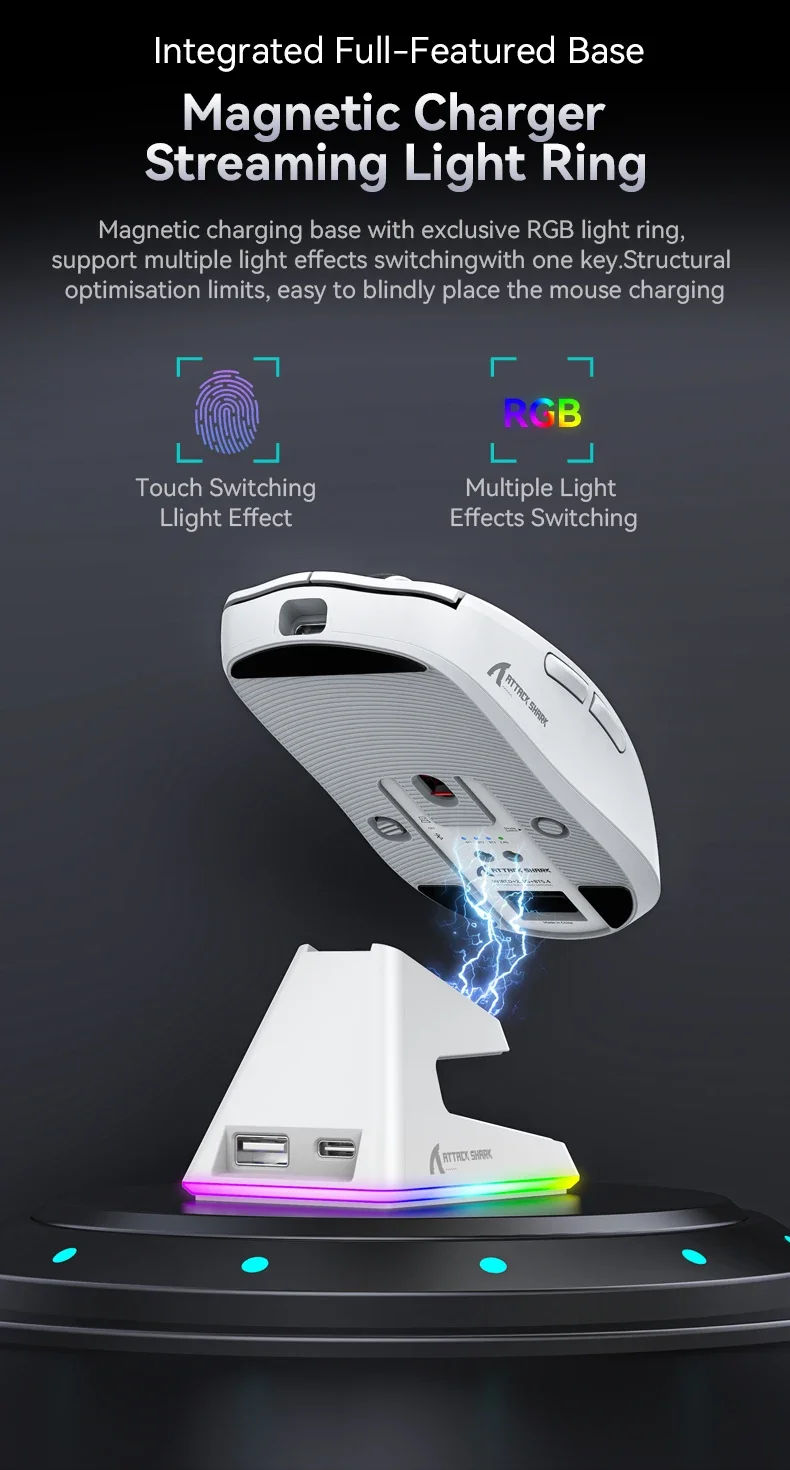 X6 Attack Shark Lightweight Wireless Mouse Up To 26K DPI RGB Backlight Charging Base with Wireless 3 Mode for Laptop Deskbtop